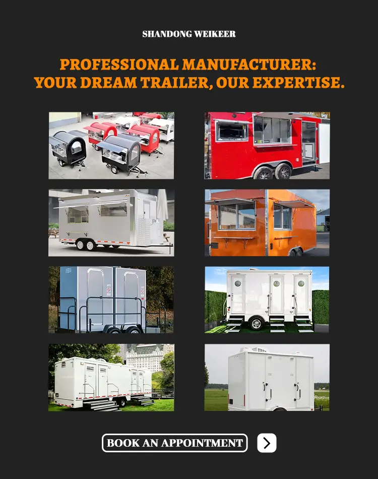 Providing durable, customizable toilet trailers, mobile kitchens, and food trucks with full support from design to delivery. Quality, innovation, and customer satisfaction are our priority.